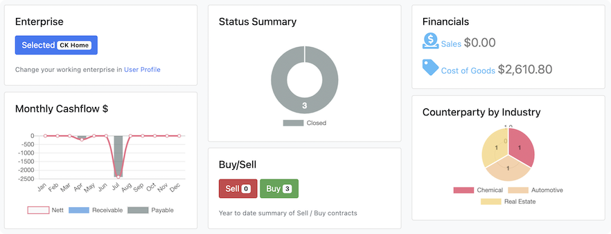 This tile gives a summary of Buy vs Sell contracts for the current year. Click on each will bring your to the list of Buy or Sell contracts.