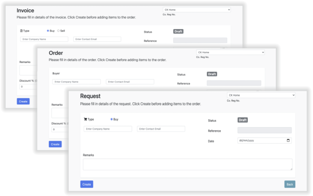 Request enables full integration of the entire procurement/transaction process online on the platform. Buyer would start the transaction by issue a Quotation request directly on the platform.